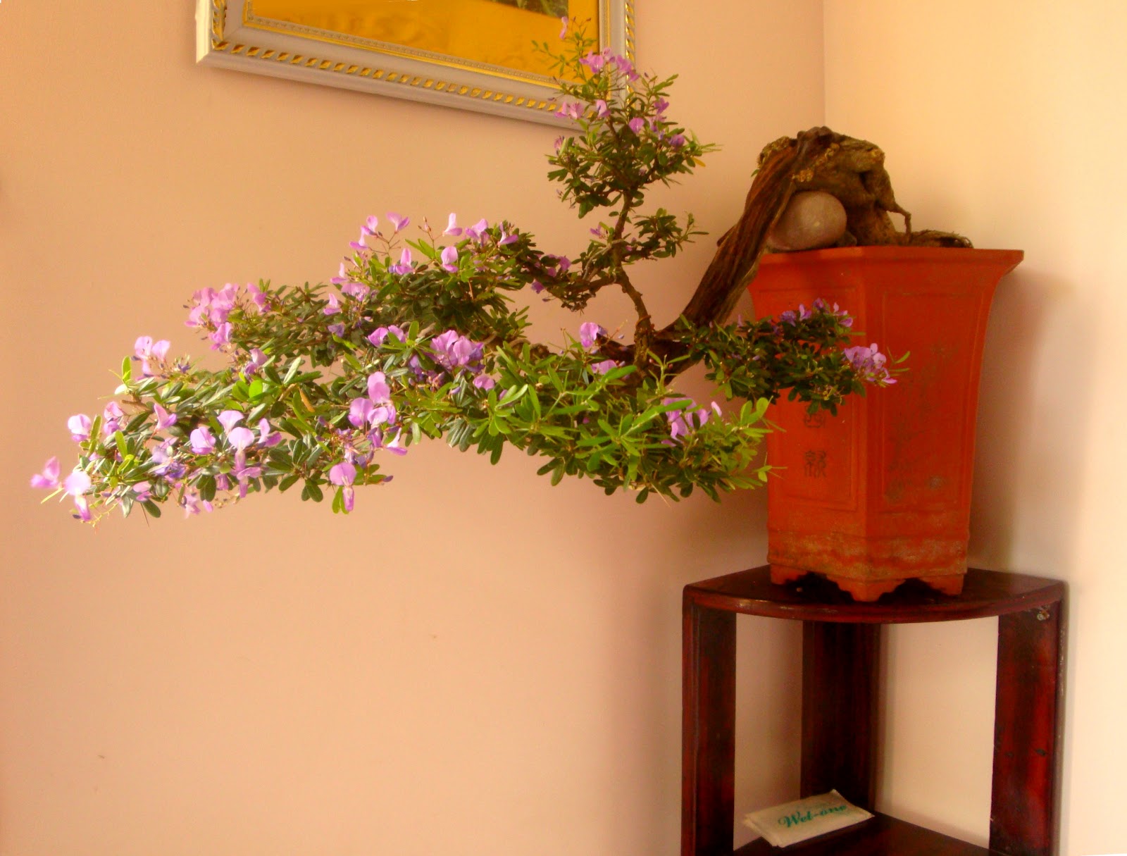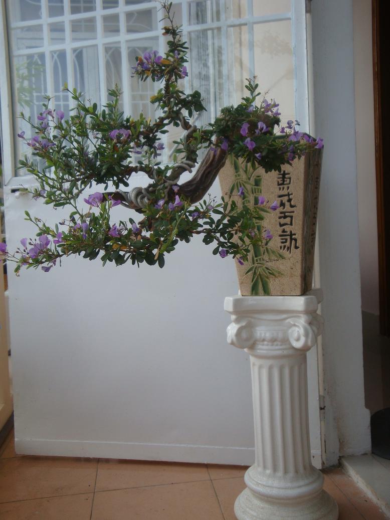 Cây linh sam này được tạo tác từ một gốc linh sam khiêm tốn, có kích thước thân gốc chỉ bằng một cánh tay người lớn. Chiều cao tổng thể của tác phẩm cũng chỉ khoảng 60cm, đã tác hợp với thế hiếm và khó làm (đổ treo) cùng với sự dày hoa đã tạo nên giá trị của tác phẩm.